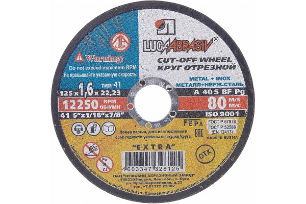 Круги отрезные и шлифовальные Луга