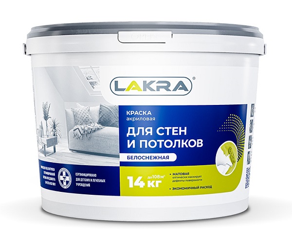 Краска акрил. д/стен и потолков Белоснежная ( 14 кг) Лакра – продажа в Уфе. 24.01 Краски водно-дисперсионные – купить оптом. Компания Акварель.